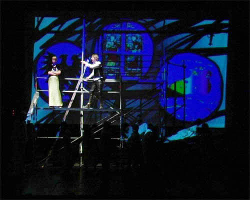 BAUERNOPER 2006: Regie M.D.Lux Theatergruppe Vornerum Parktheater Bensheim (das Bühnenbild bestand aus der Animation von oben nach unten laufendener Symbole in drei Fenstern, nach dem Prinzip einer Slot-Machine, die dann in immer verschiedenen Konstellationen stehen blieben)