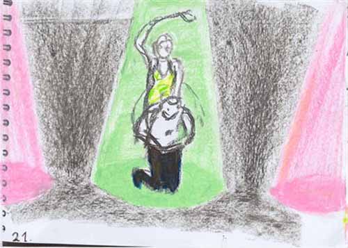 Skittze Szene de Sade unter der Peitsche, zum Bühnenbild von Marat/Sade Bensheim 2003
